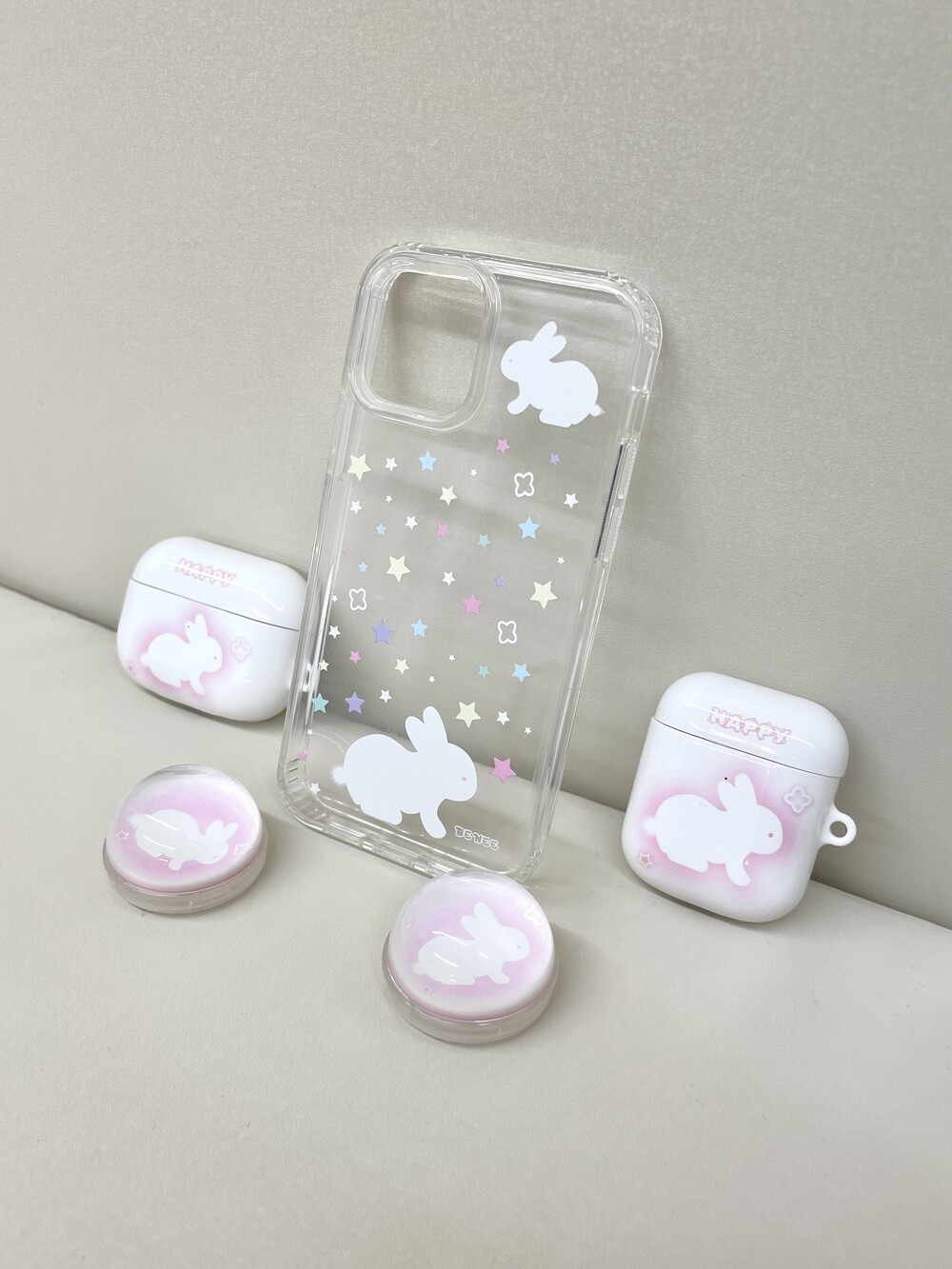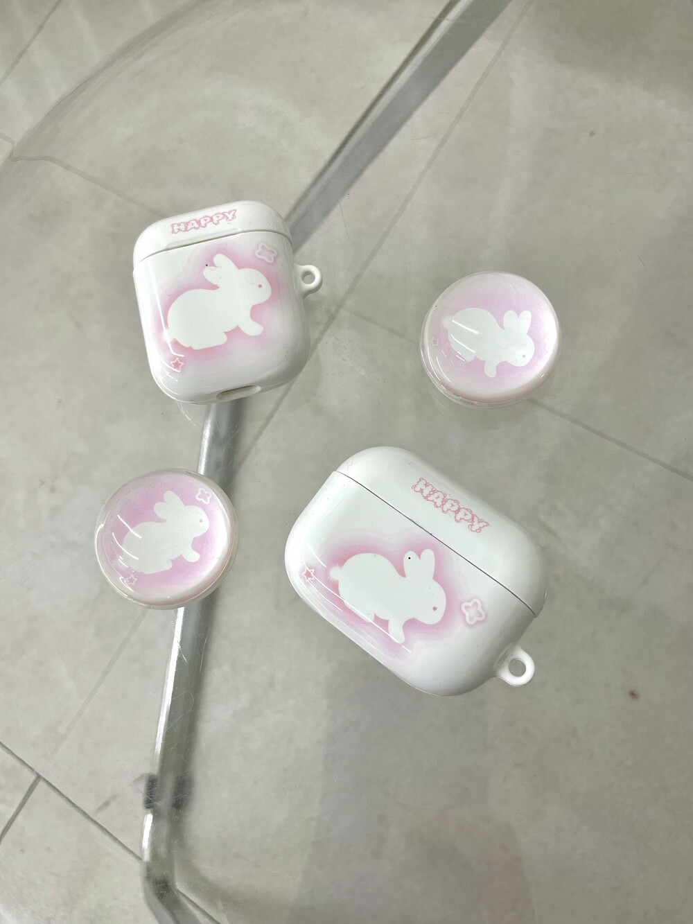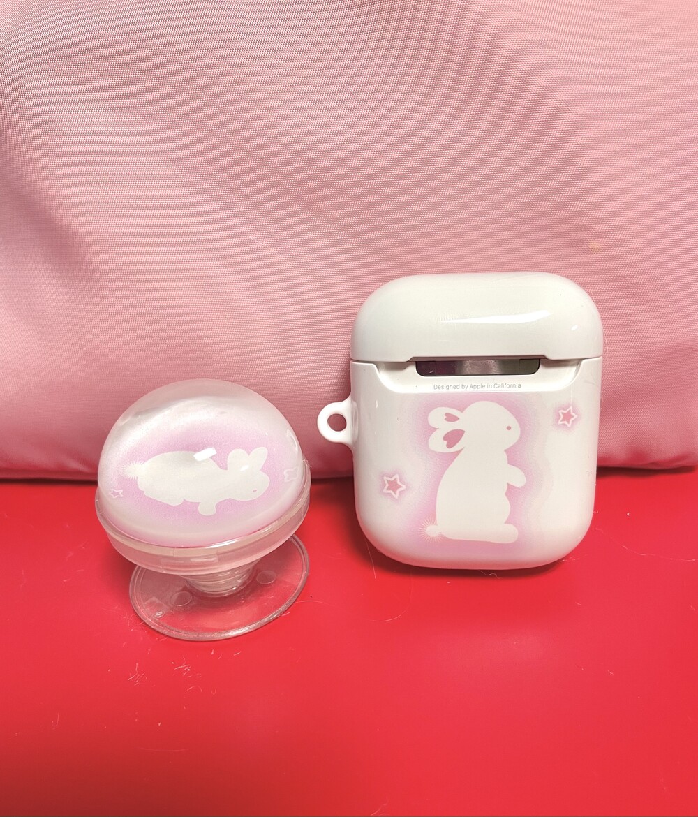 토끼모양의 핑크빛이 도는 귀여운 에어팟 입니다.