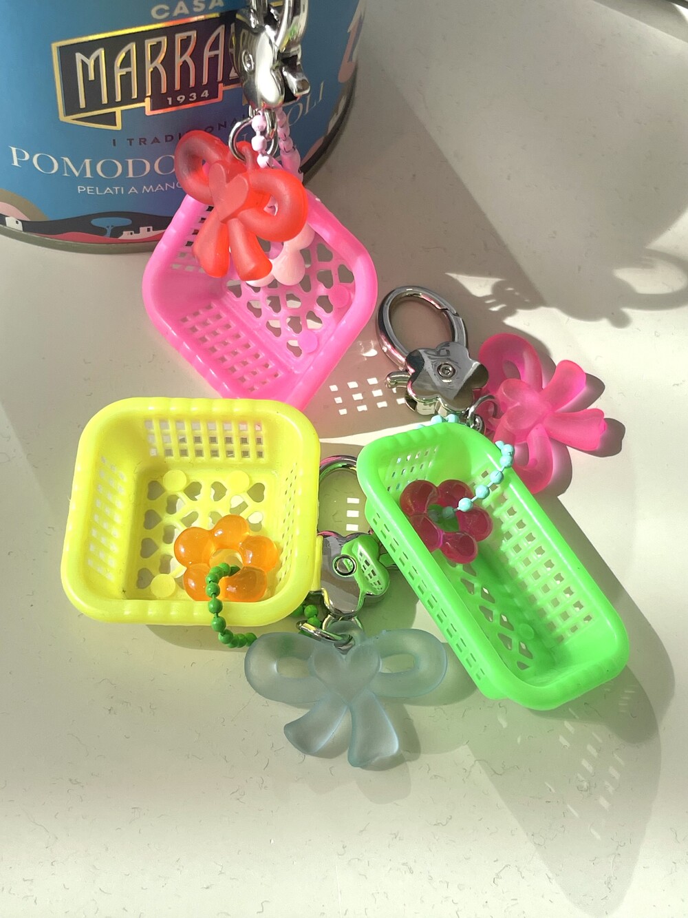 3가지 다양한 색상과 리본,꽃이 함께 달려있어
