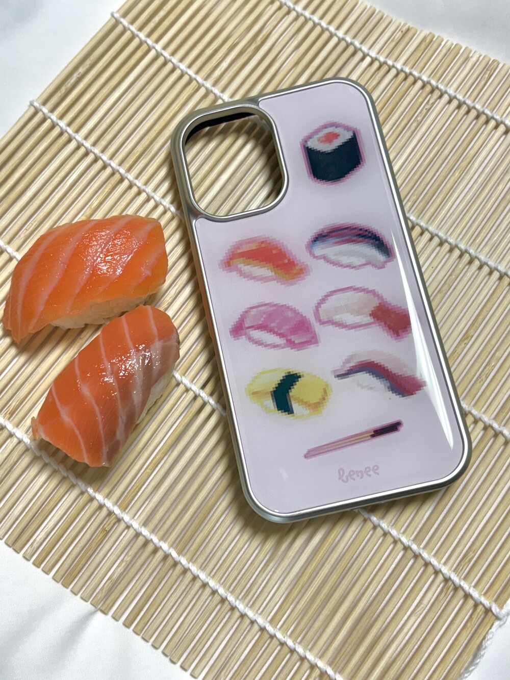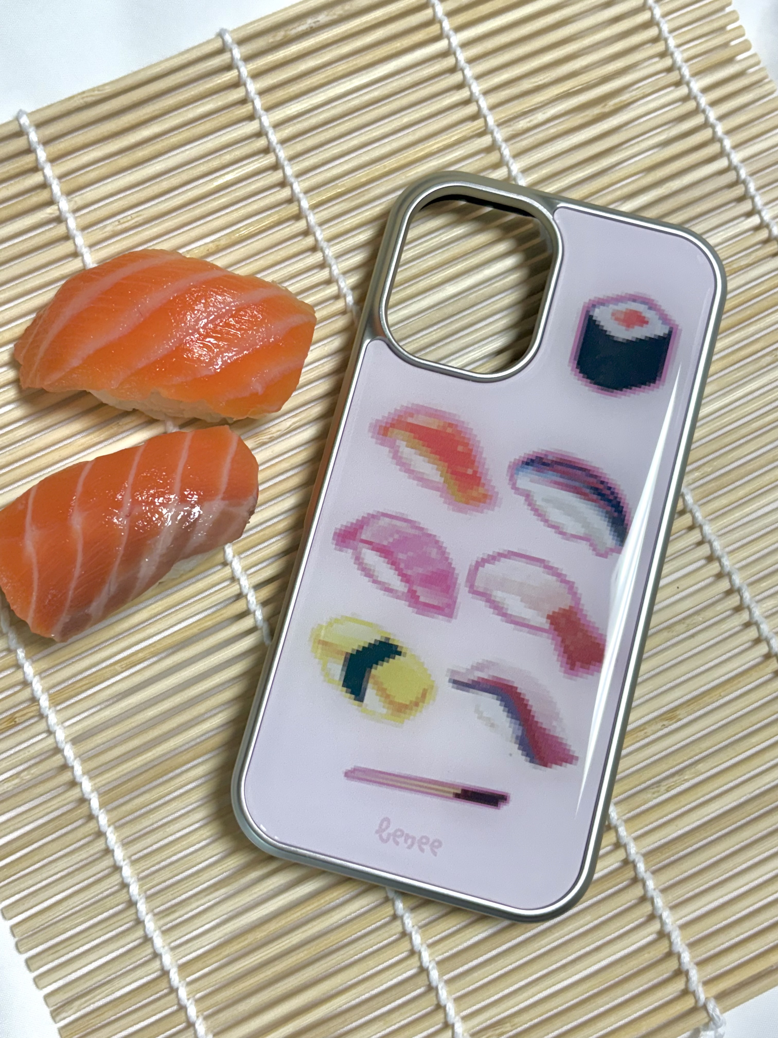 픽셀초밥 디자인의 실버 에폭시 범퍼 케이스 입니다,