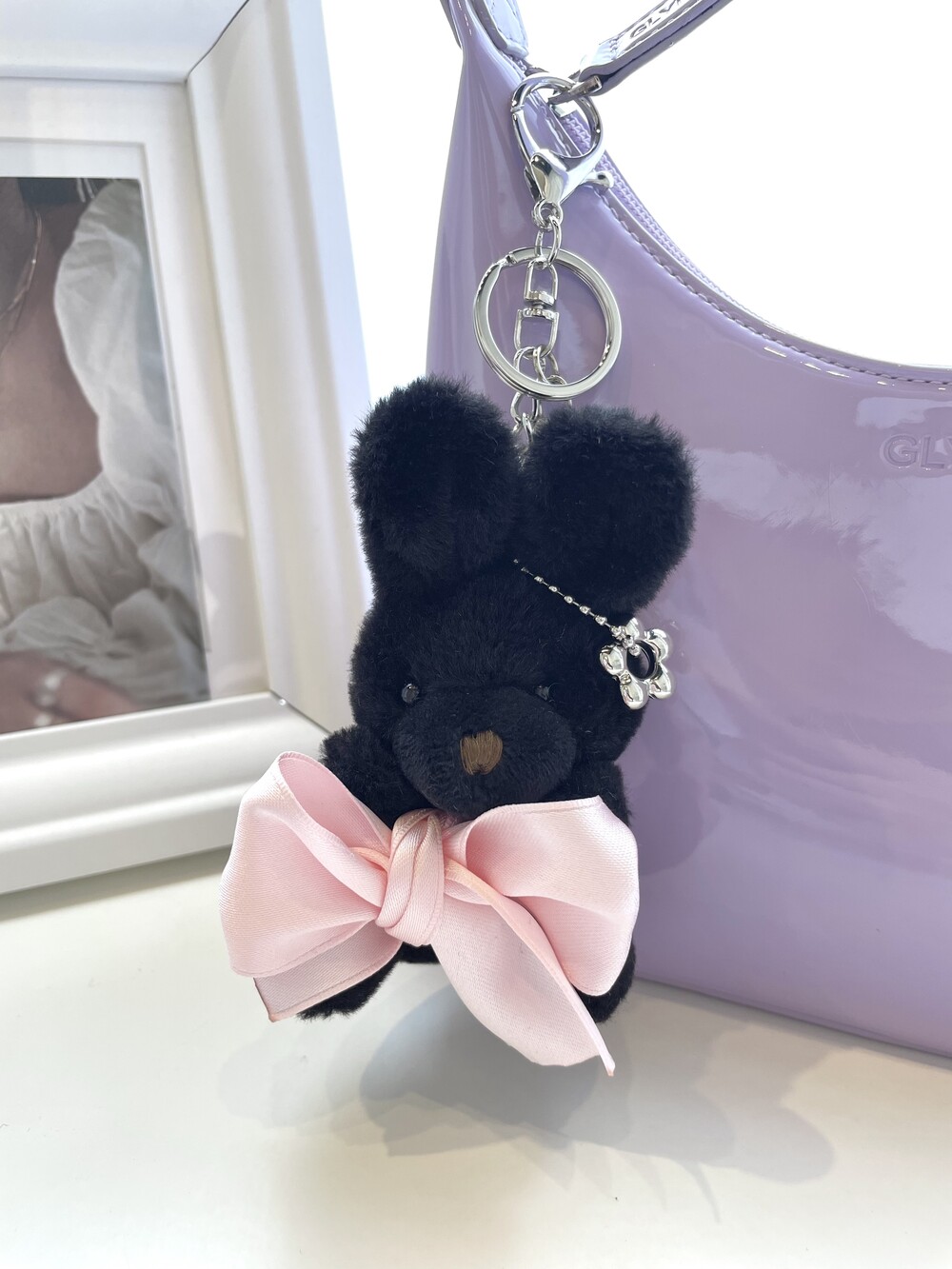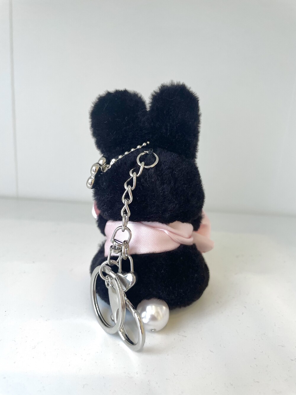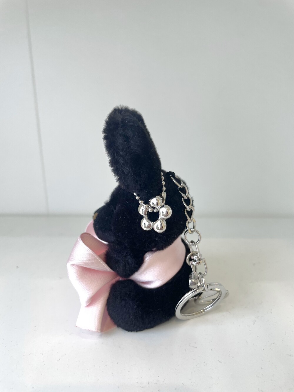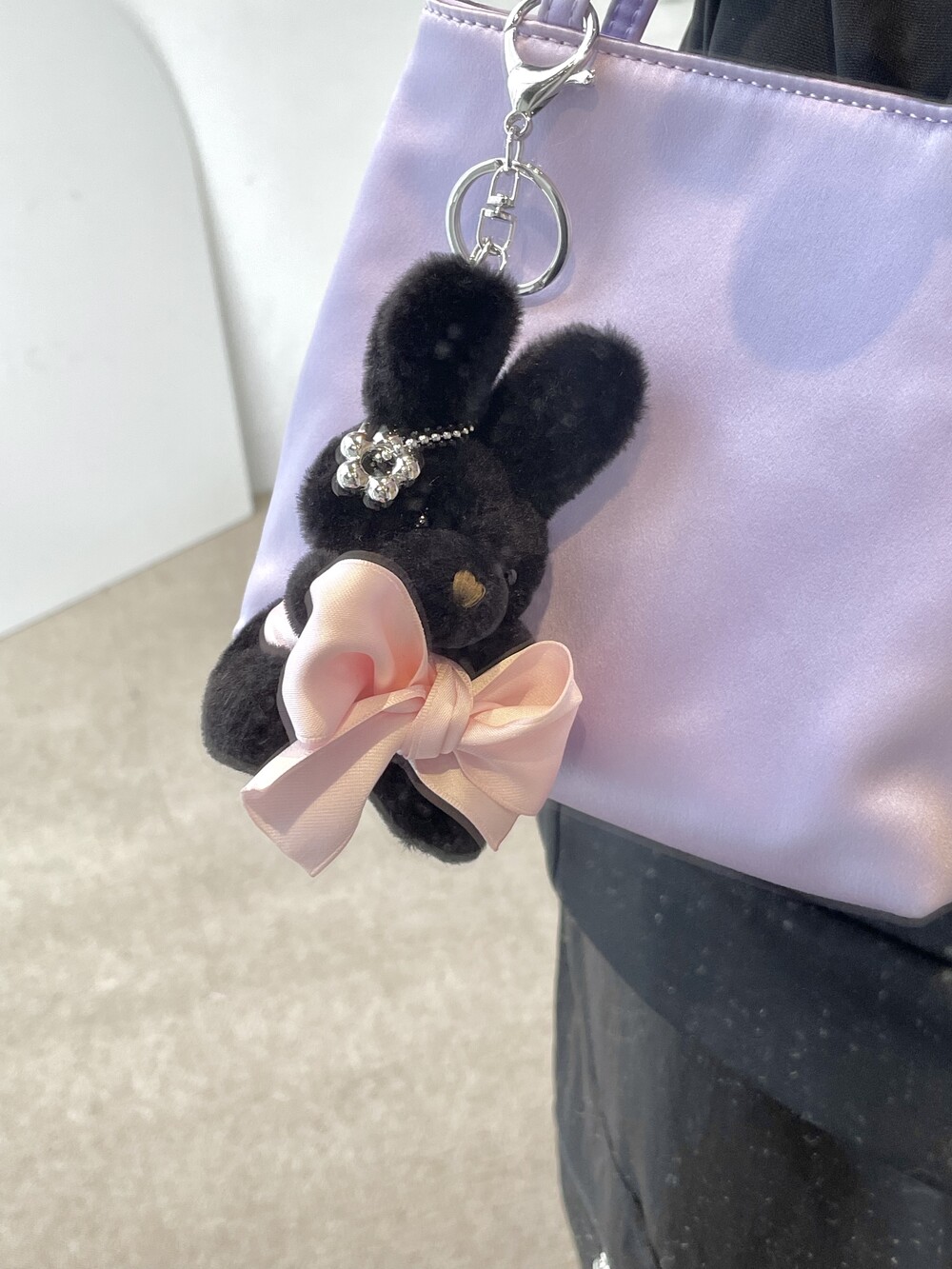 뒷모습이 매력적인 리본을 맨 토끼 인형 키링입니다.