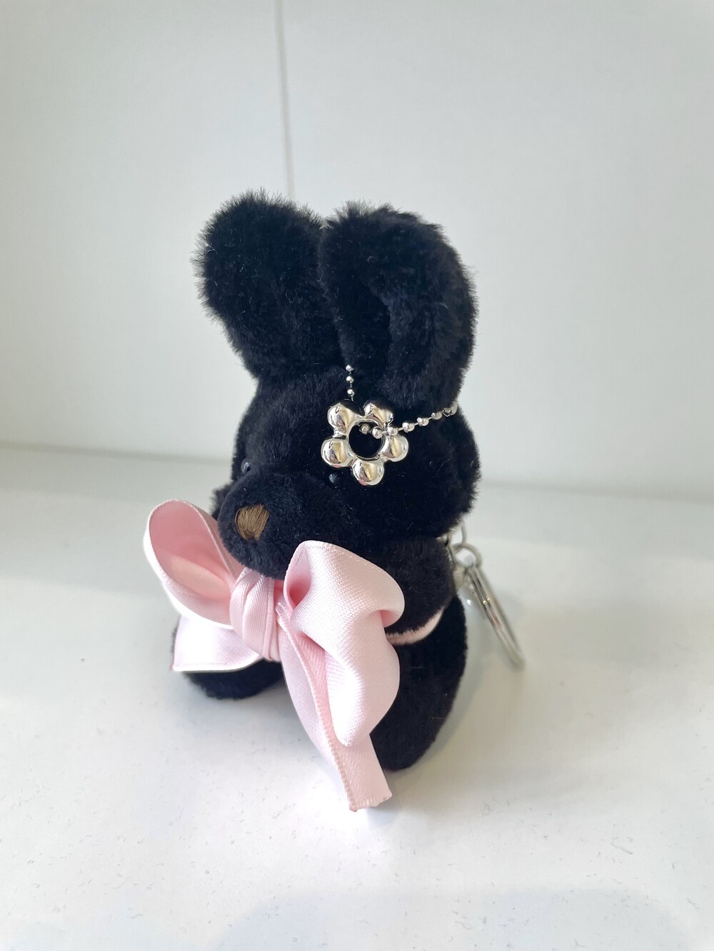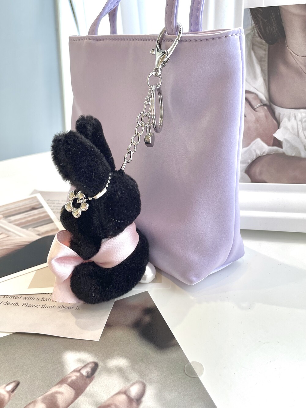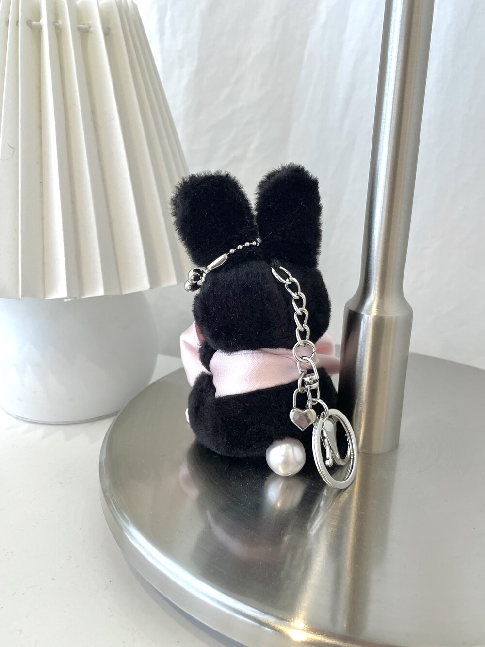 뒷모습이 매력적인 리본을 맨 토끼 인형 키링입니다.