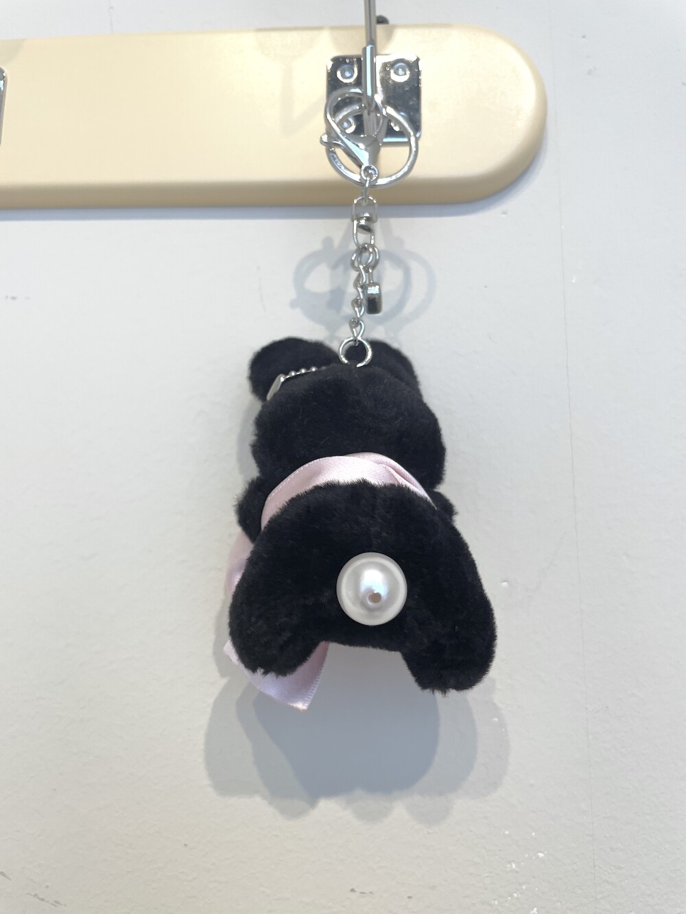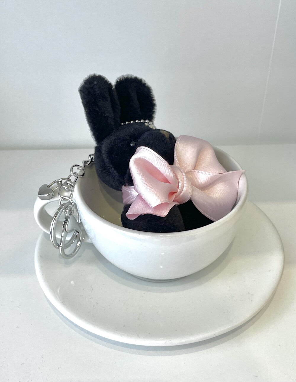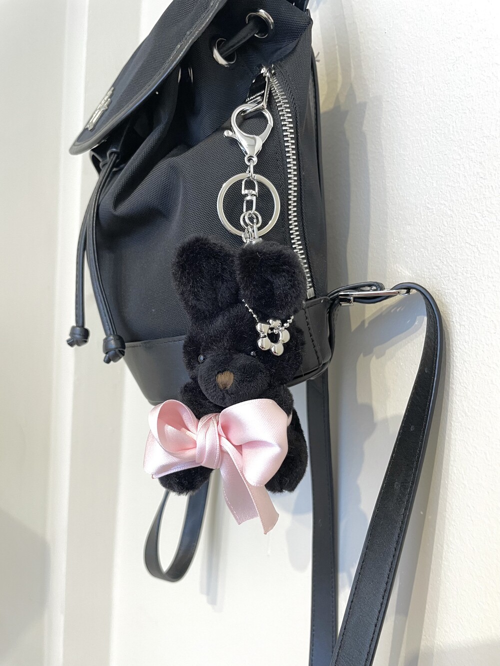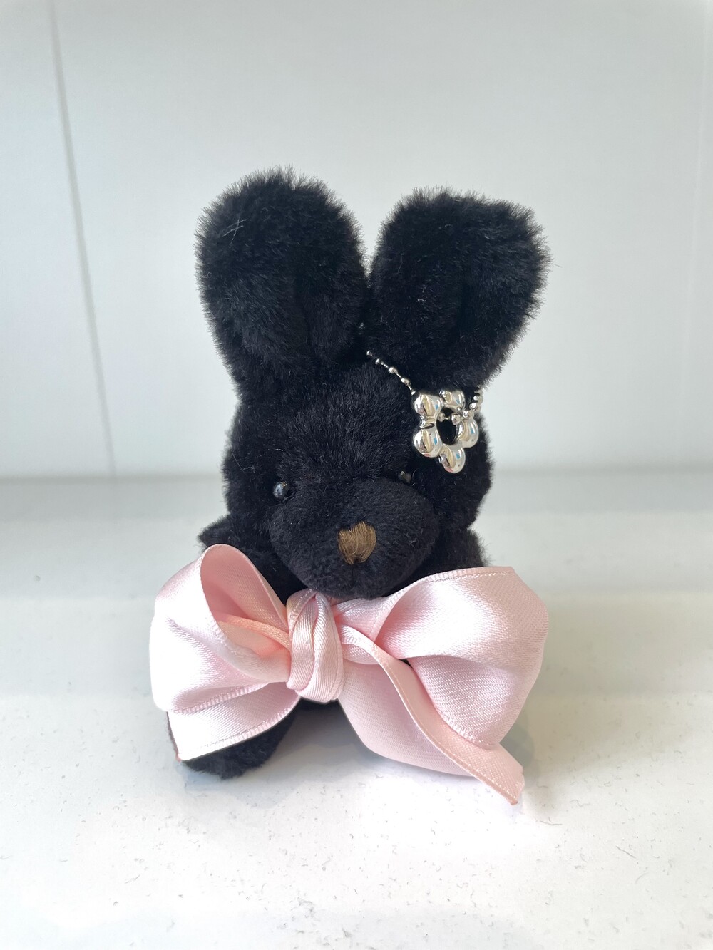 뒷모습이 매력적인 리본을 맨 토끼 인형 키링입니다.