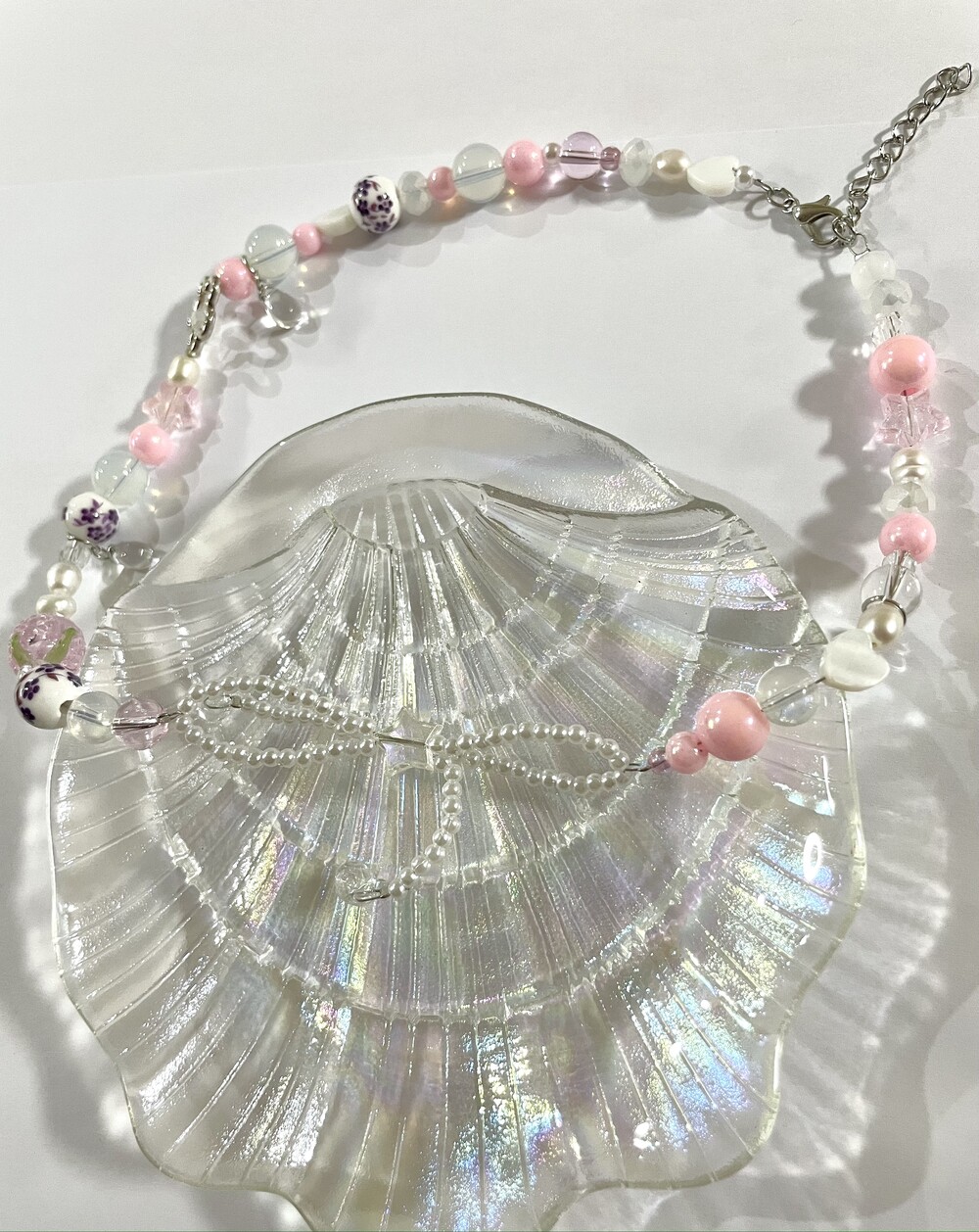 유리, 비즈들이 어우러진 목걸이 입니다.