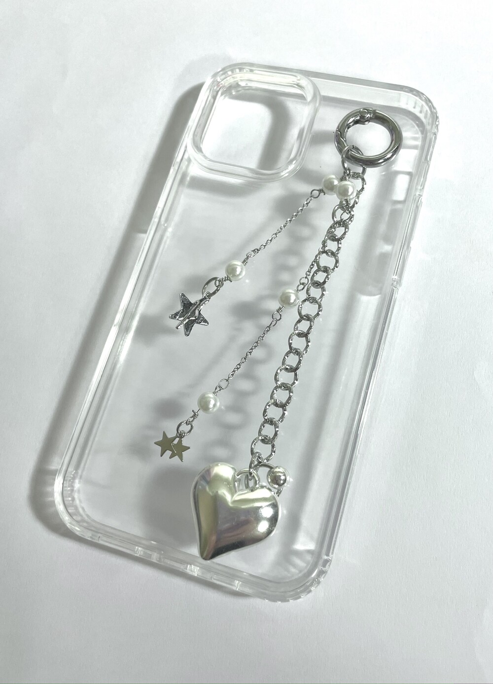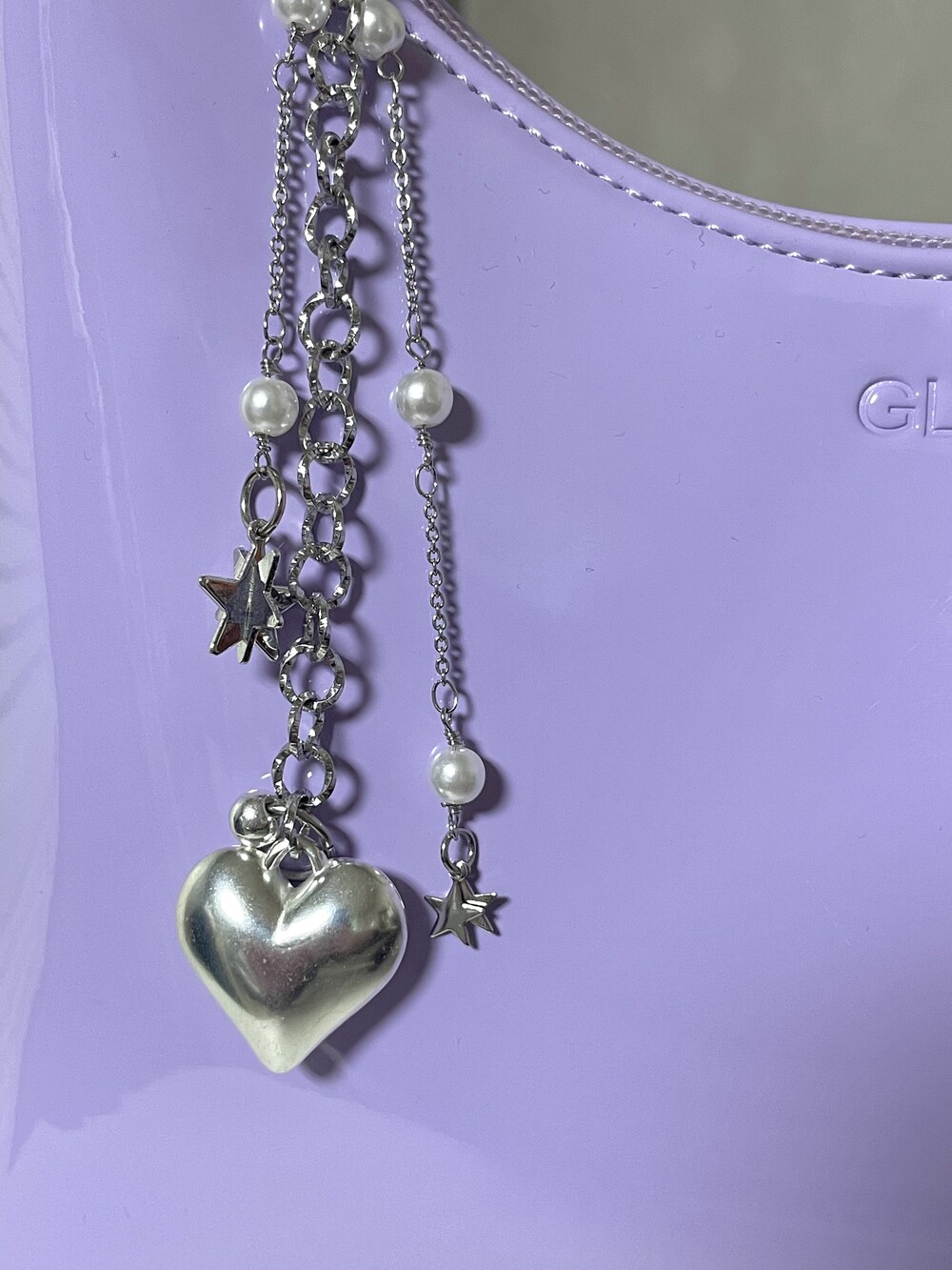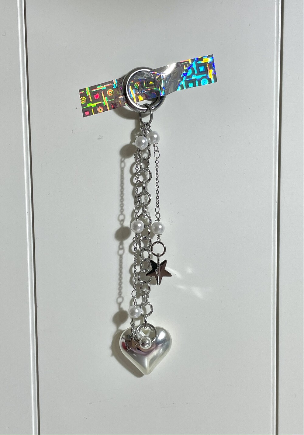 하트, 별, 진주의 조합으로 제작된 키링입니다.