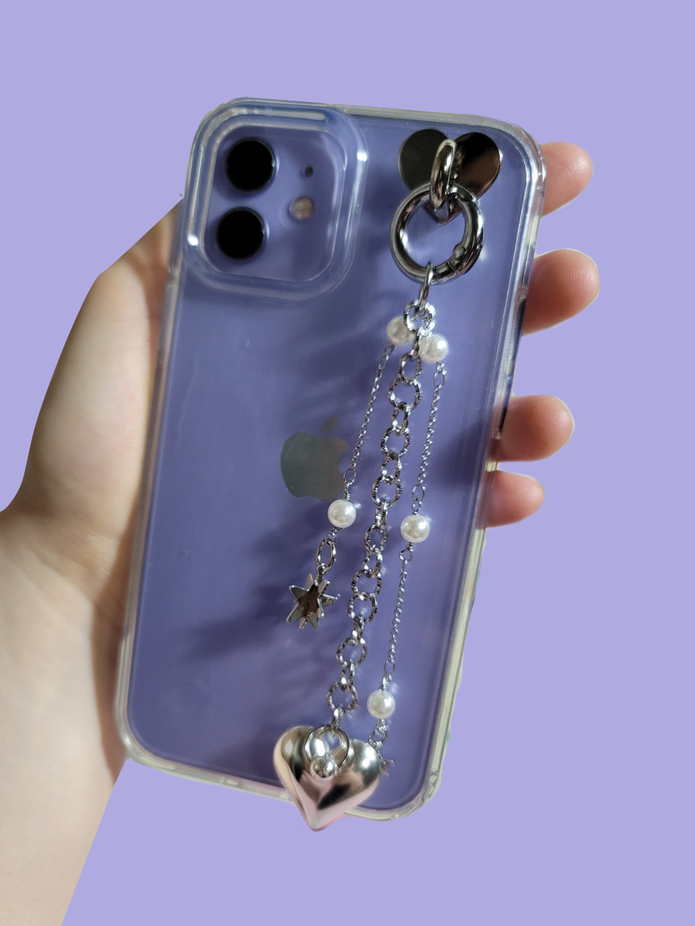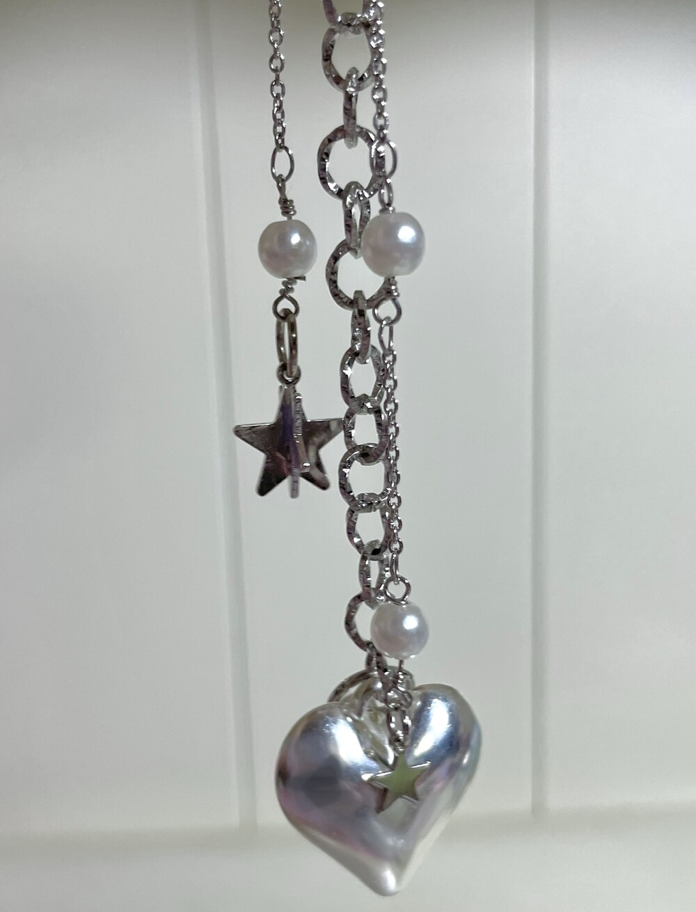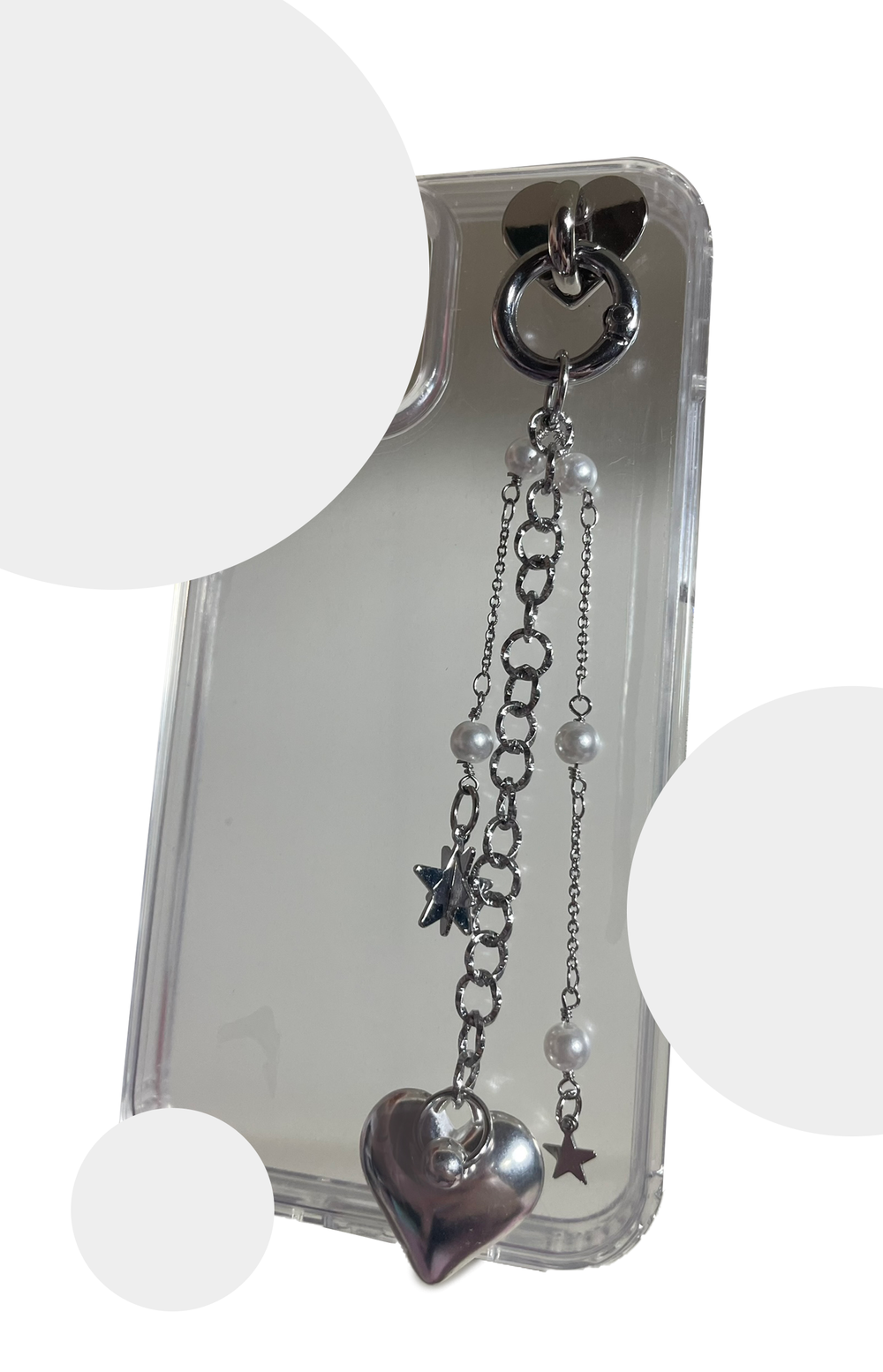 하트, 별, 진주의 조합으로 제작된 키링입니다.