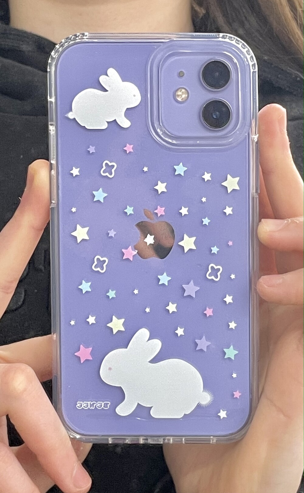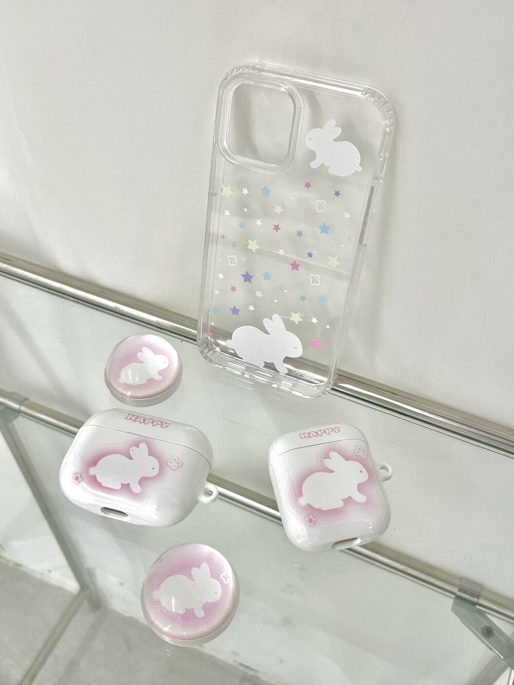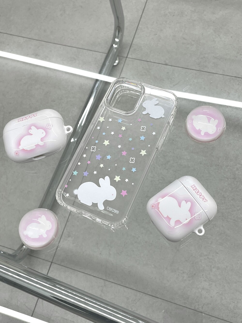 수백 개의 별들과 토끼가 함께 어우러져 디자인된 투명하드 폰케이스 입니다.