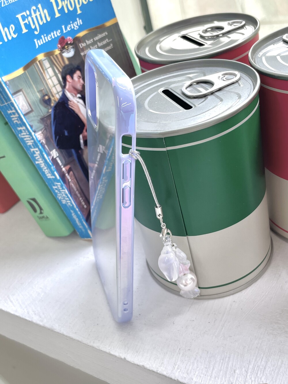 앞부분판은 오로라 빛 , 옆부분은 보랏빛 색상의 폰케이스와