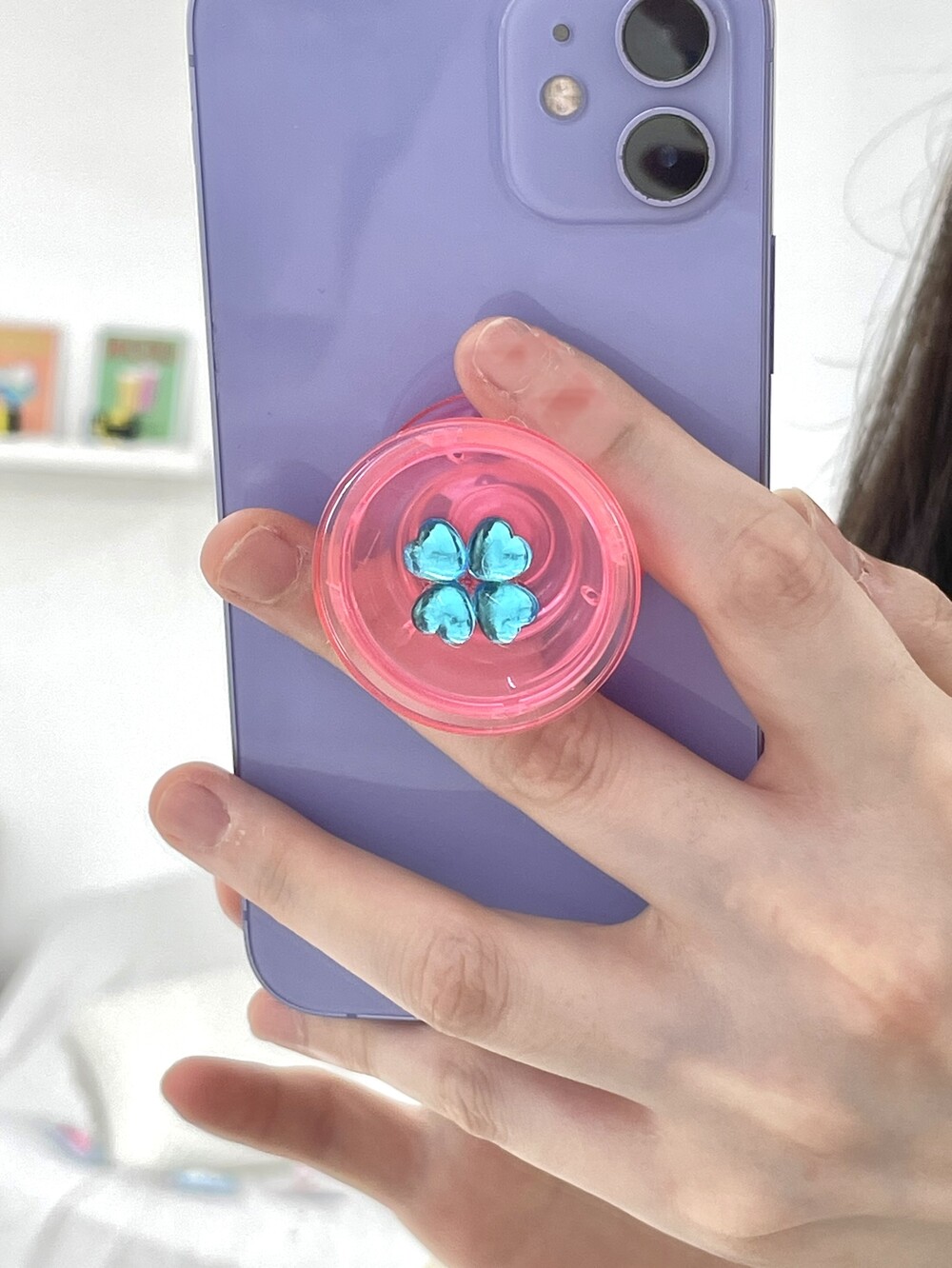 네잎클로버 모양으로 이루어진 하트 컬러 그립톡 입니다.
