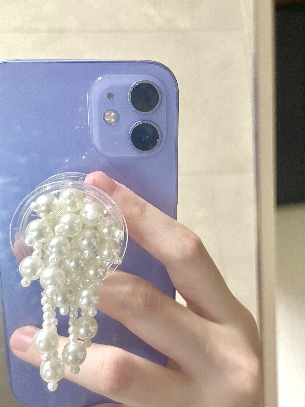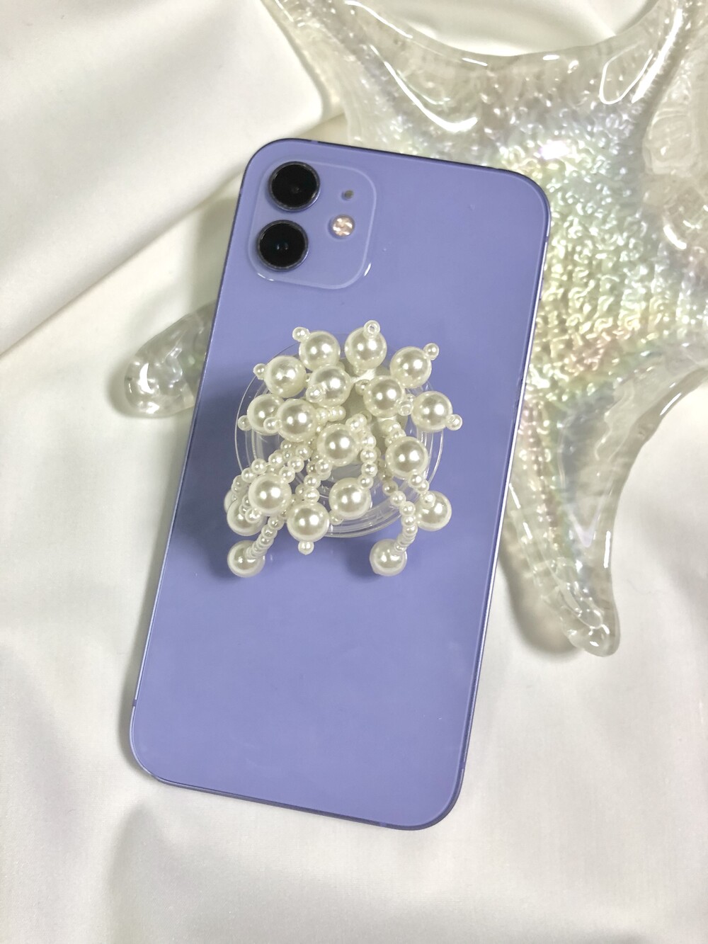 진주 비즈들이 엮인 해파리 모양 그립톡입니다.