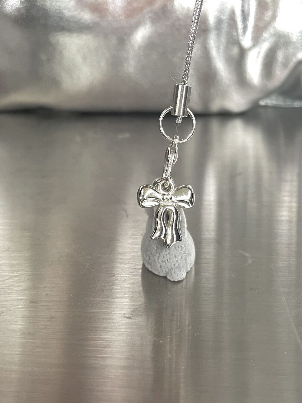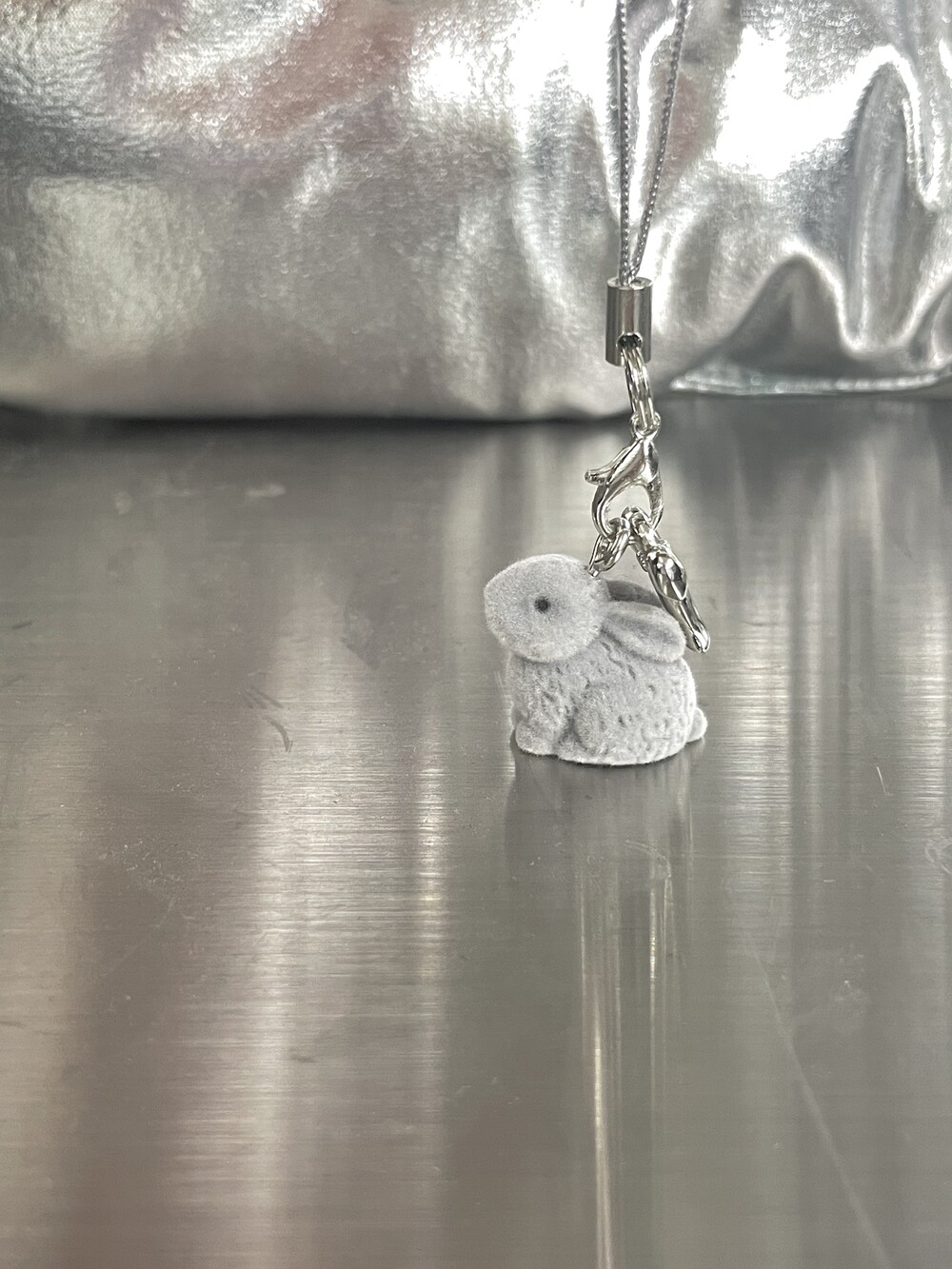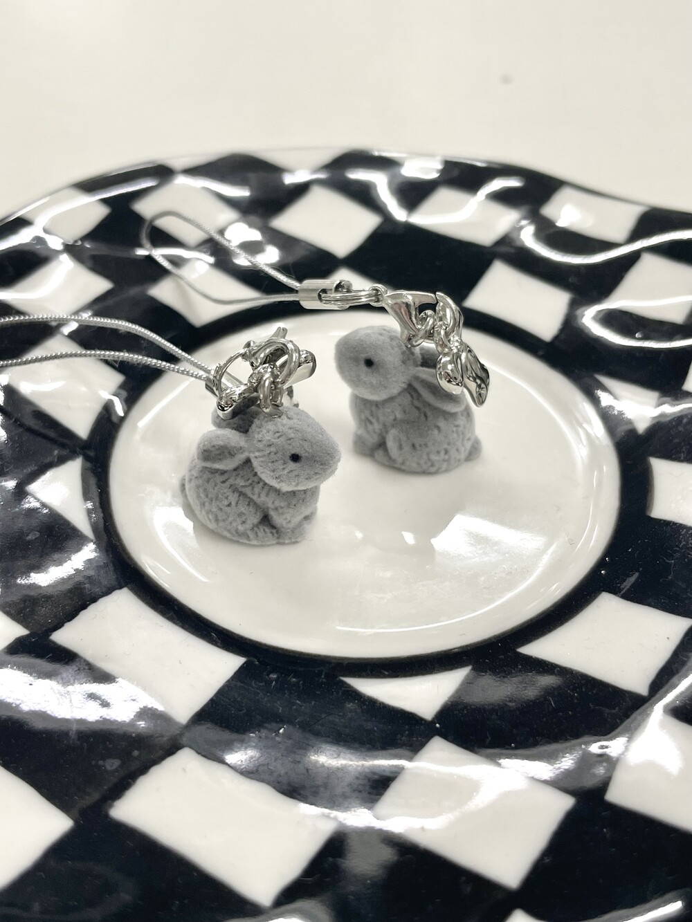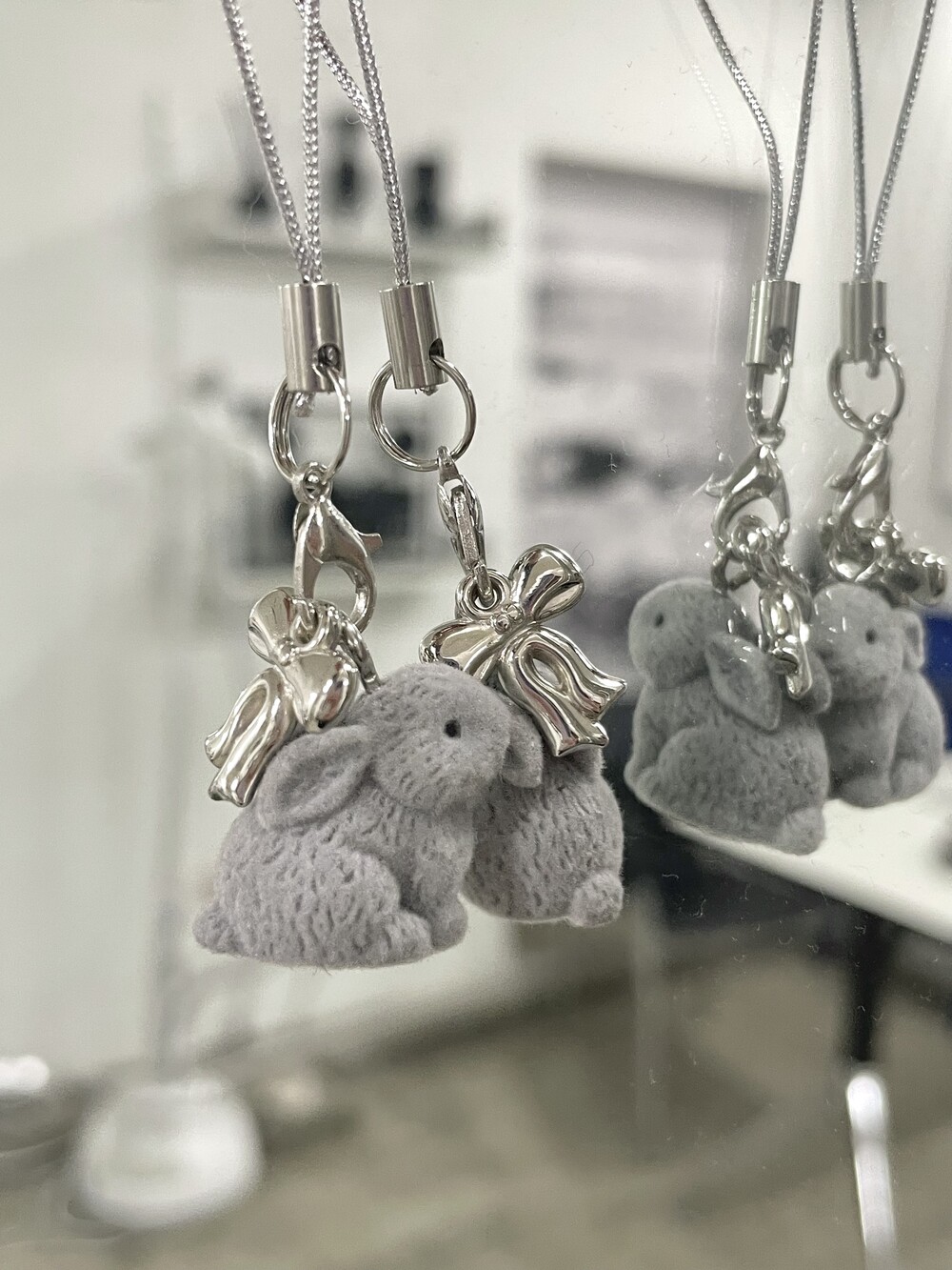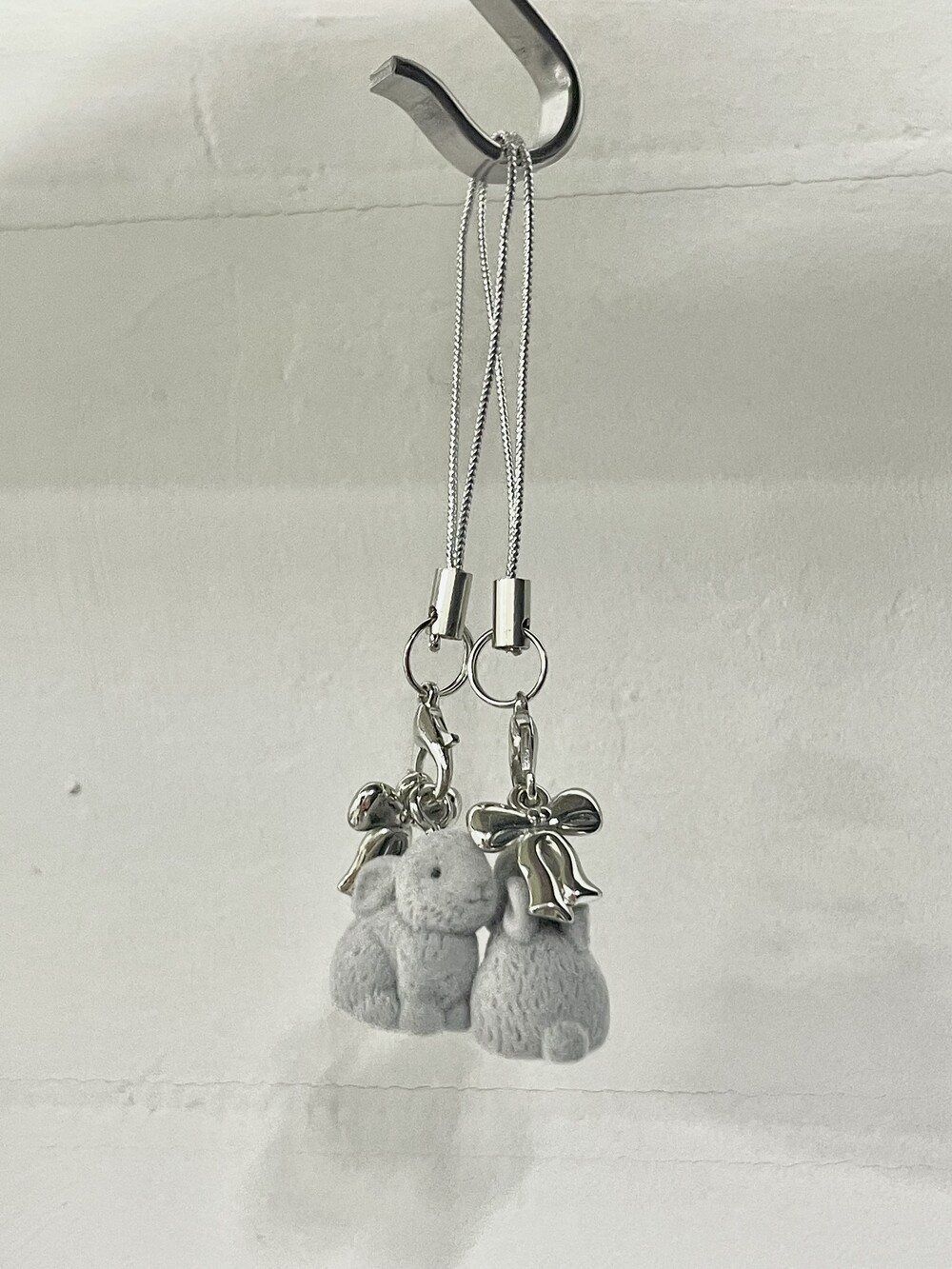 메탈 리본과 귀여운 회색 토끼가 포인트인 키링 입니다.
