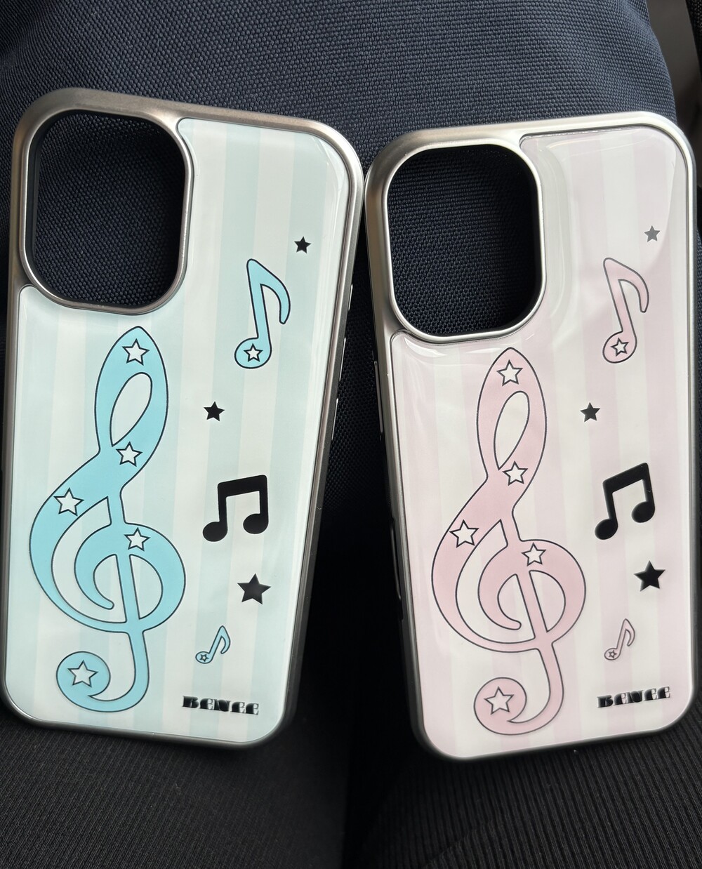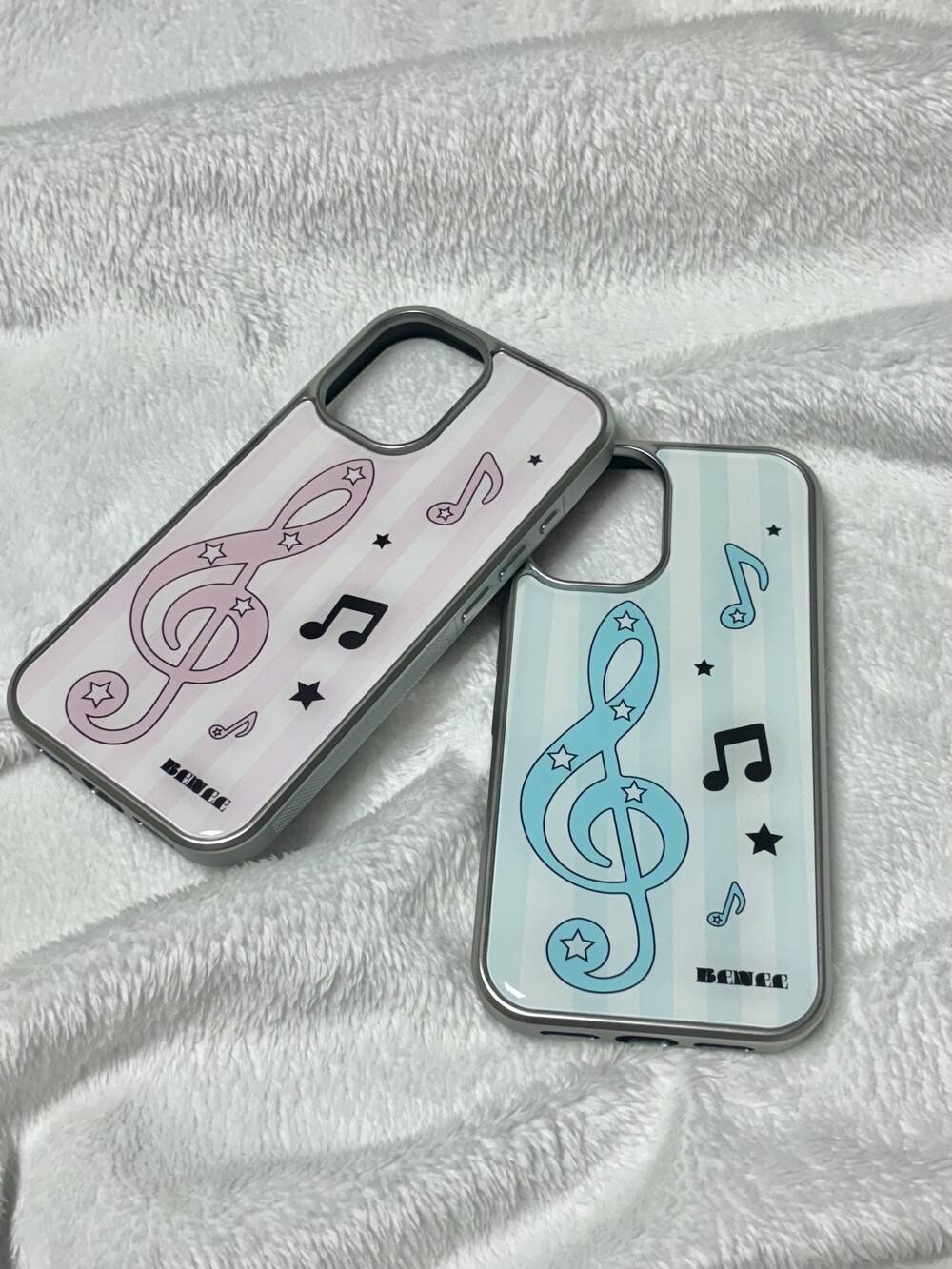 높은음자리표 디자인의 실버 에폭시 범퍼 케이스입니다.