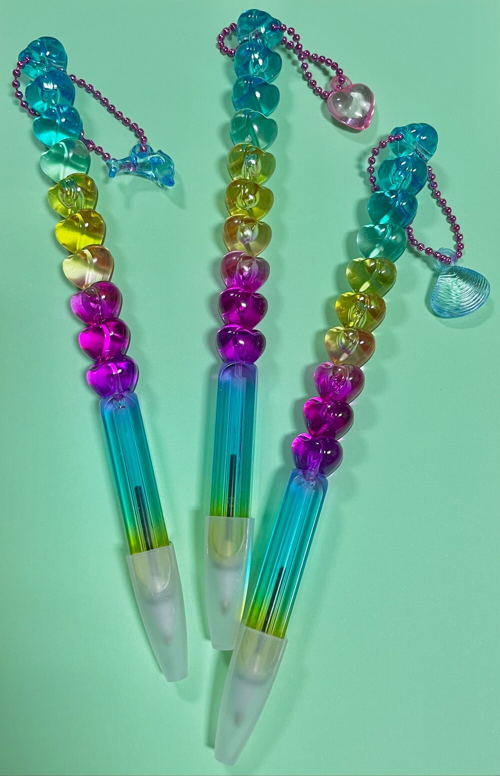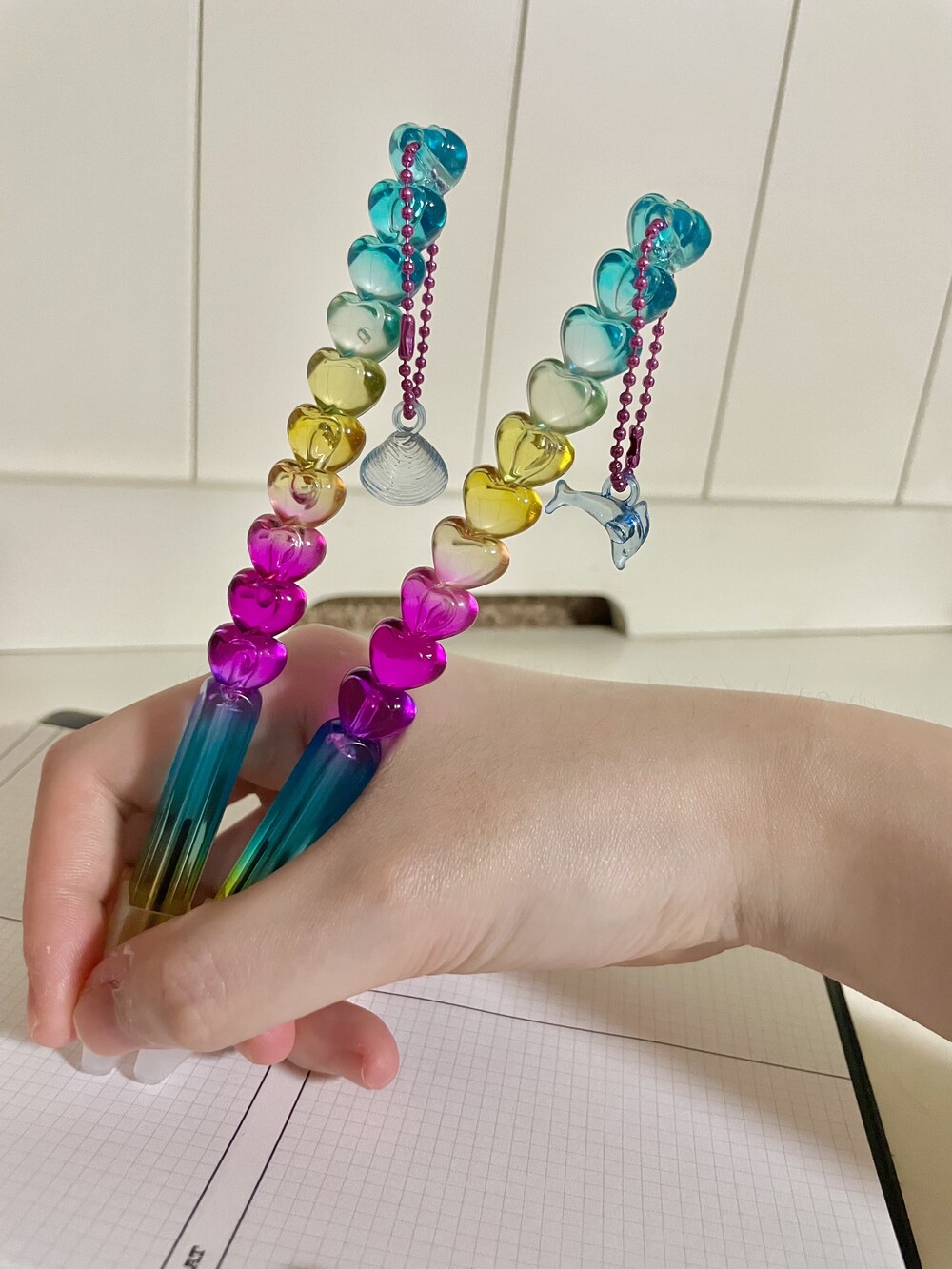 돌고래, 하트, 조개 참 장식이 포인트인 인어공주느낌의 볼펜입니다.